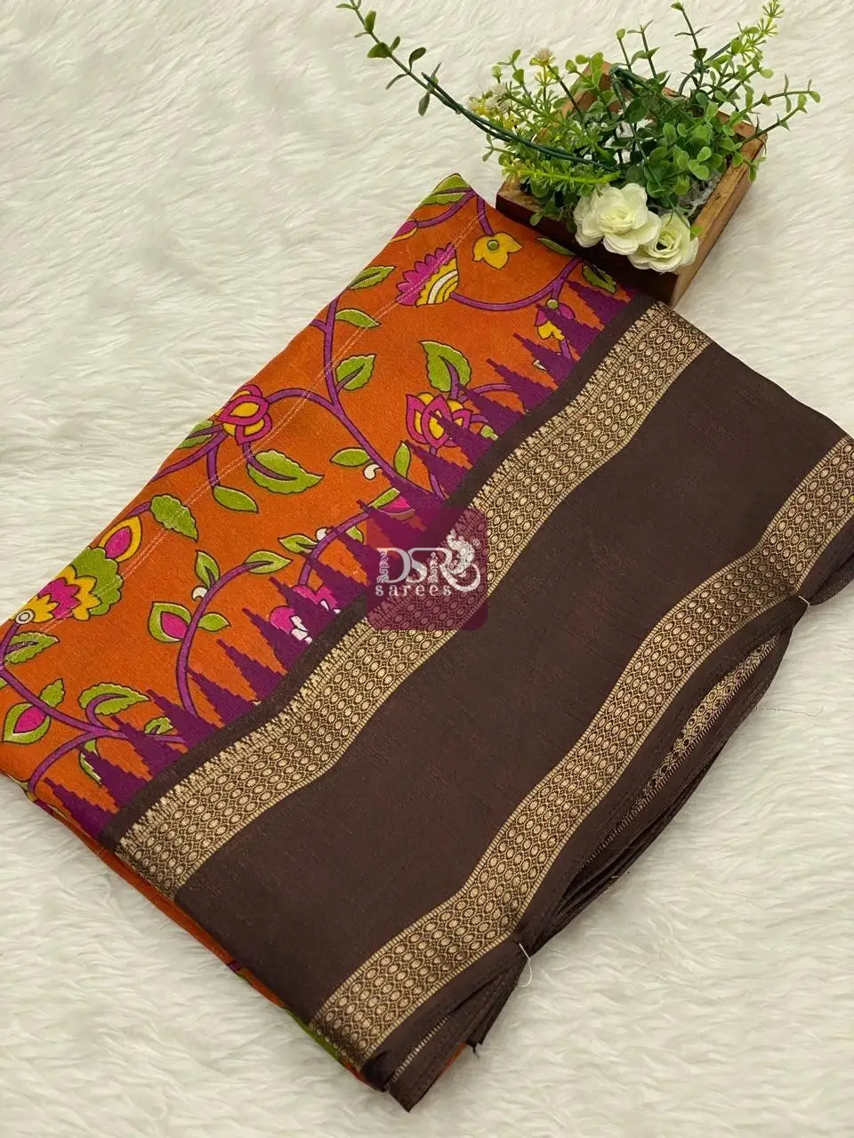 Contrast Kalamkari Printed Pallu