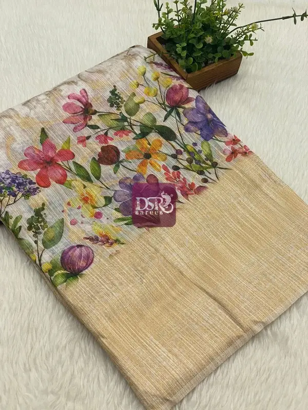 digital printed soft chanderi cotton sarees with allover banarasi copper zari weaving